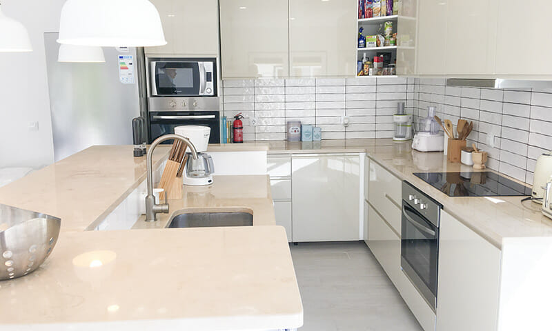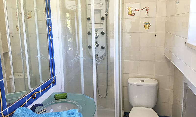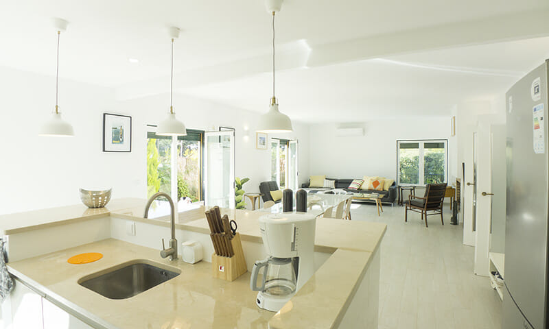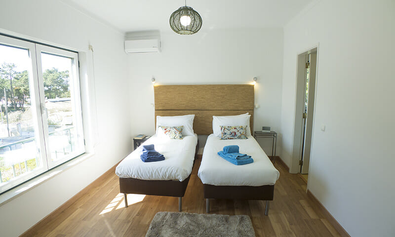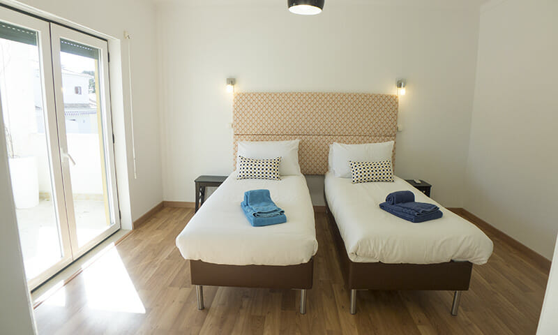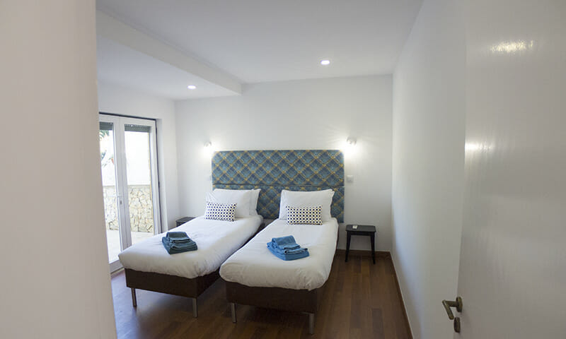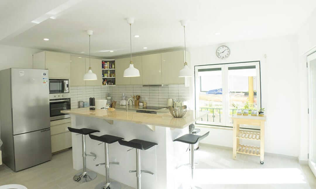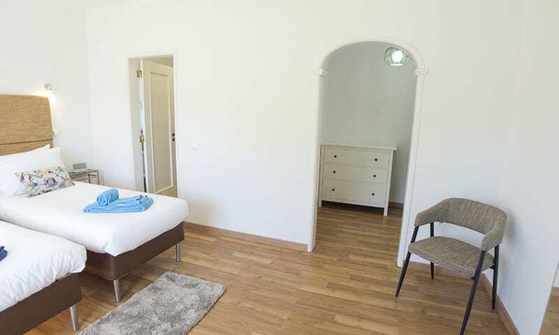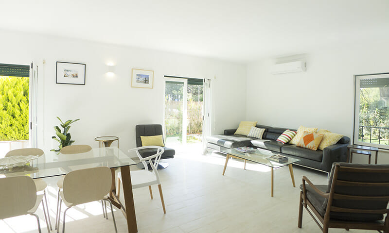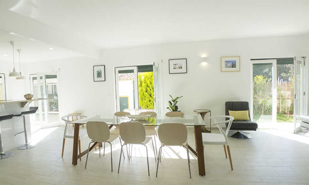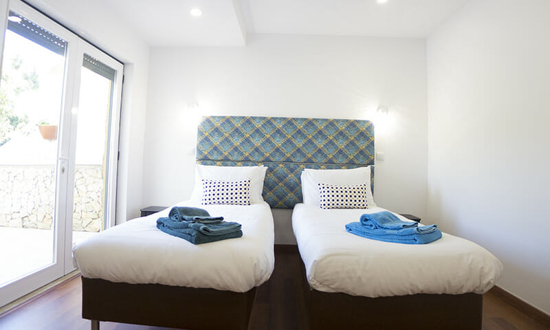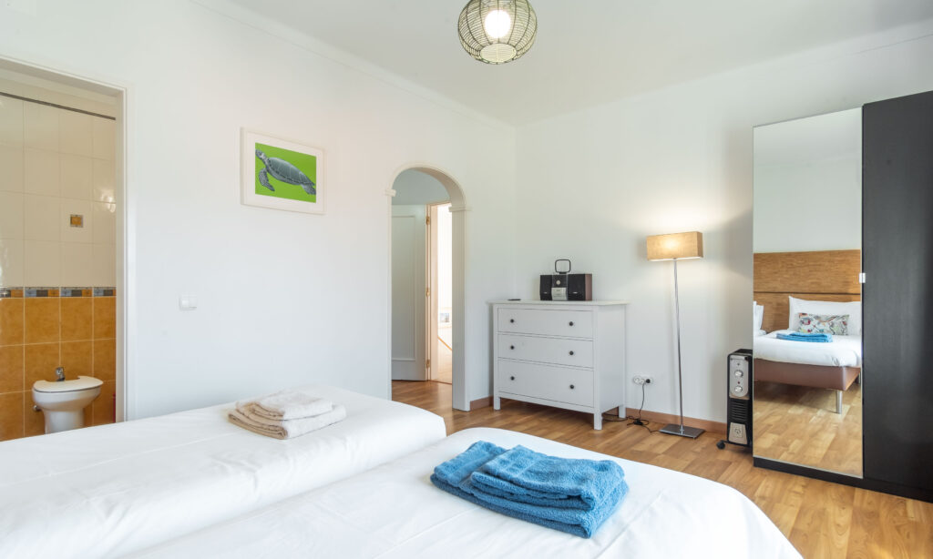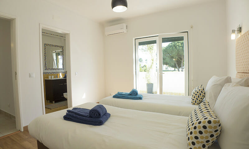 The LV Premier Meco/Albufeira LA1 vacation rental features a very large living area with spacious kitchenette in one end, the dinning area in the middle and the sitting/TV area at the other end, next to the fireplace. Enjoy free WIFI, cable TV and stream your favorite content in our smart TV. There are 3 ensuite bedrooms in the upper floor, plus 2 double bedrooms in the main floor. All 5 bedrooms are very luminous and are equipped with AC/ heating. There are 3 bathrooms with shower enclosures in the upper floor (one per bedroom), plus a large bathroom with bathtub and a shower enclosure, plus a social bathroom in the main floor. A baby cot/ portable crib is available if requested. Our properties feature the luxurious LV Premier signature beds – inviting crisp linen/bed sheets, hypoallergenic duvet/comforters, and new mattresses. We also provide fluffy cotton bath and beach towels – sure to make you feel relaxed and invigorate your vacation.