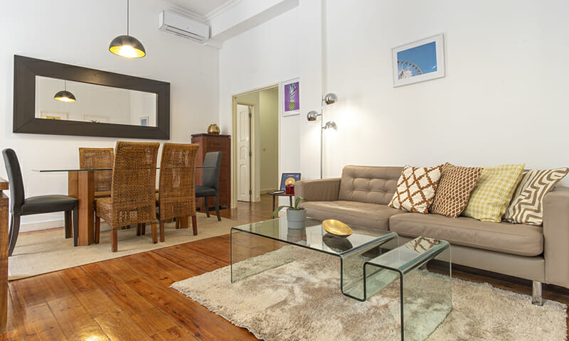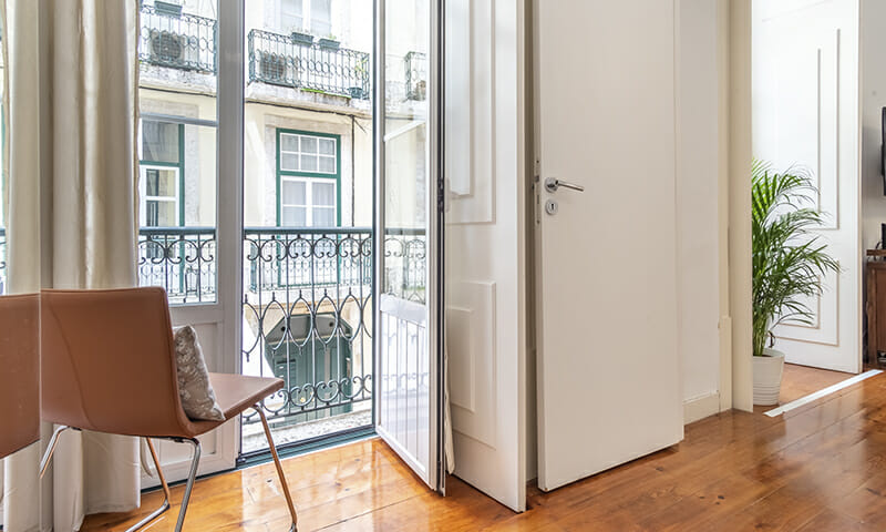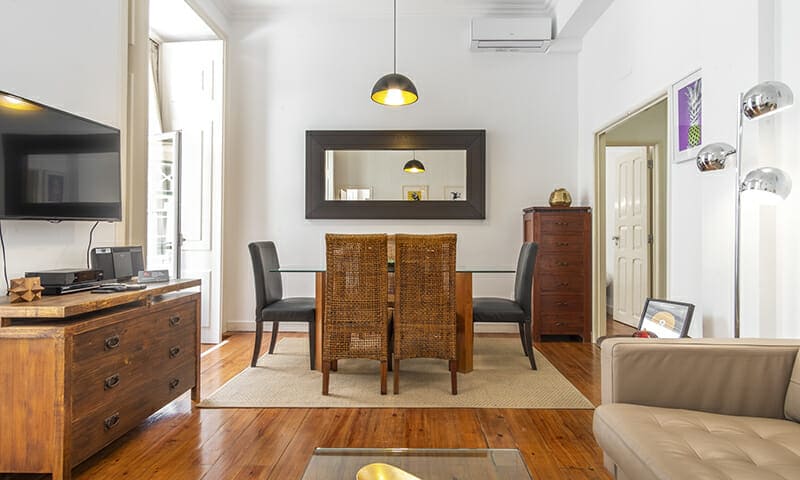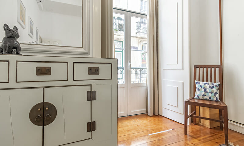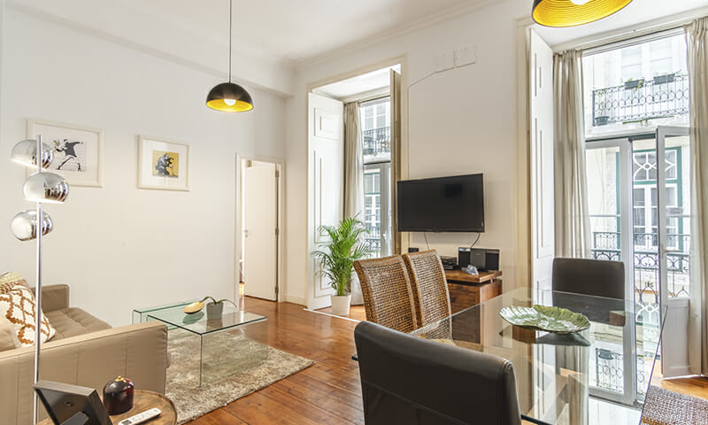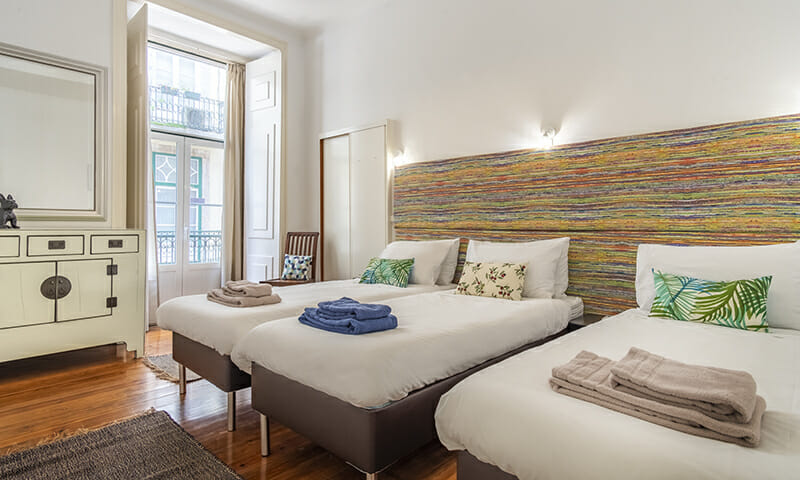 LV Premier Baixa Apartments – CR2 is a comfortable 3 bedroom/2 bathroom apartment with balcony located in a pedestrian Rua dos Correeiros street with charming city views. You will find many restaurants, shops and main attractions right by your door. We are within an easy walk of traditional Alfama or lively Bairro Alto. The apartment has been completely renovated, featuring Air Conditioning and double-glazing windows for additional comfort. It accommodates 7 people in the bedrooms and a maximum of 1 extra guest in a folding bed. This is a pet friendly apartment, rigorously cleaned to prevent allergies. 89827/AL
