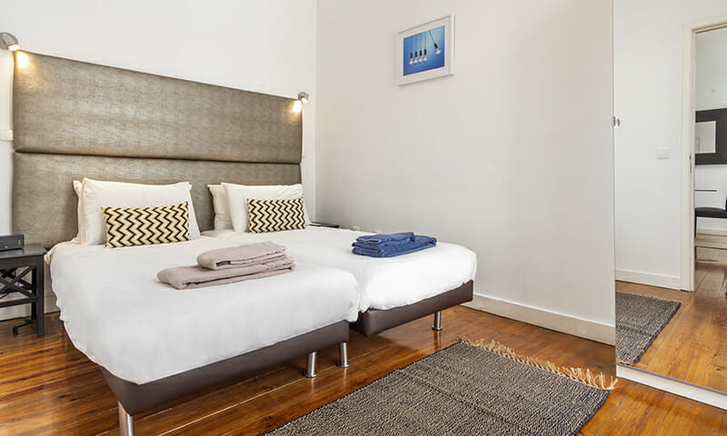The LV Premier Baixa Apartments CR2 vacation rental apartment has large living room, 3 bedrooms (the suite with a double bed, a double that can be prepared as 2 singles or one king size bed and a triple bedroom with 3 single beds or one king/1 single), and real kitchen and 2 bathrooms (one with bathtub and the other with a shower enclosure). We equipped the apartment with the popular signature LV Premier beds – new mattresses, freshly ironed linen and soft duvets for your comfort. Soft bath towels, and toiletries for your first day are also included.