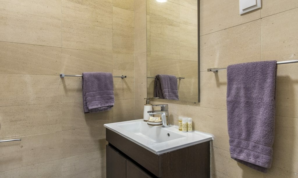 One of the 3 bedrooms- the studio – has a en suite bathroom and small kitchen and offers an added level of privacy. The other two bedrooms are standard with balcony. The second bathroom also has a shower enclosure. You will also find a small WC area. We provide soft bath towels, toiletries for your first day and of course hair dryer as a standard.