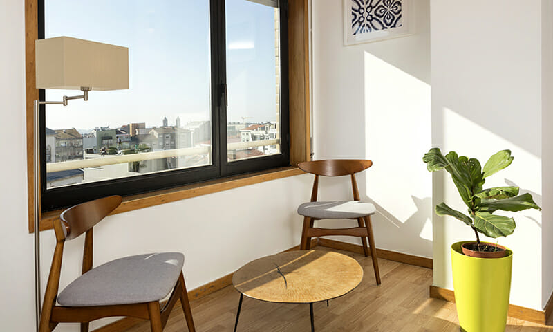 The building is from the 80s, with 2+1 elevators, and has a modern layout. Right outside you will find a variety of shops, banks, cafes and restaurants. You are also half a block away from Marques metro station with easy service to the airport, Matosinhos, Gaia and other visitor favorites. The Porto Wine caves are within easy reach- no more than 10 min drive or 4 metro stations.