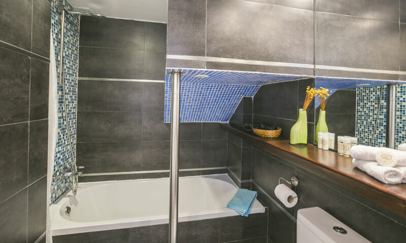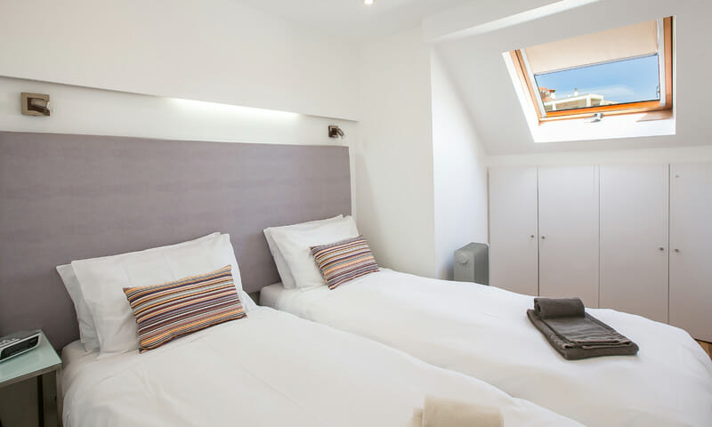LV Premier PReal Apartments PI1 is a 3-bedroom vacation rental, has a great layout. The main level has 2 bedrooms, living room and bathrooms, and the top floor has a private bedroom, access to the terrace and a small den. All bedrooms have signature LV Premier beds, crispy linen, soft duvets and new mattresses. The living room is modern with a sofa bed, large TV and great views facing west. One of the 2 bathrooms has a bathtub, while the other has a shower enclosure. Soft bath towels, toiletries for your first day, and more are provided by LV Premier free of charge. The terrace is one of the best-liked premium features of the apartment and has patio furniture allowing you to enjoy a meal al fresco. Please note that the apartment is located on a third floor with easy to manage stairs but no elevator.