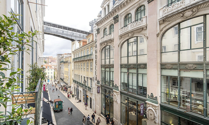 Our Chiado building, located in Rua do Carmo, was built following the fire at the turn of the century that devastated the city block, with a award winning design by respected Portuguese architect Siza Vieira. Traditional Portuguese facade in the front, modernistic back, and a fully modern interior makes this rare combination of tradition and modernism in the city center.