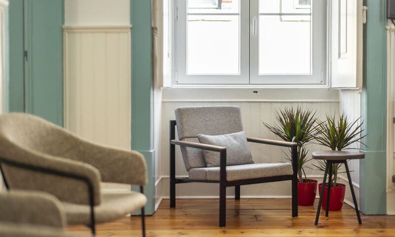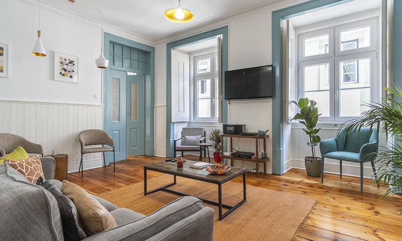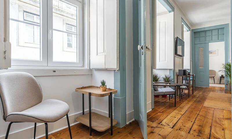 The LV Premier Baixa DO1 apartment is a spacious and bright apartment, featuring large windows throughout.