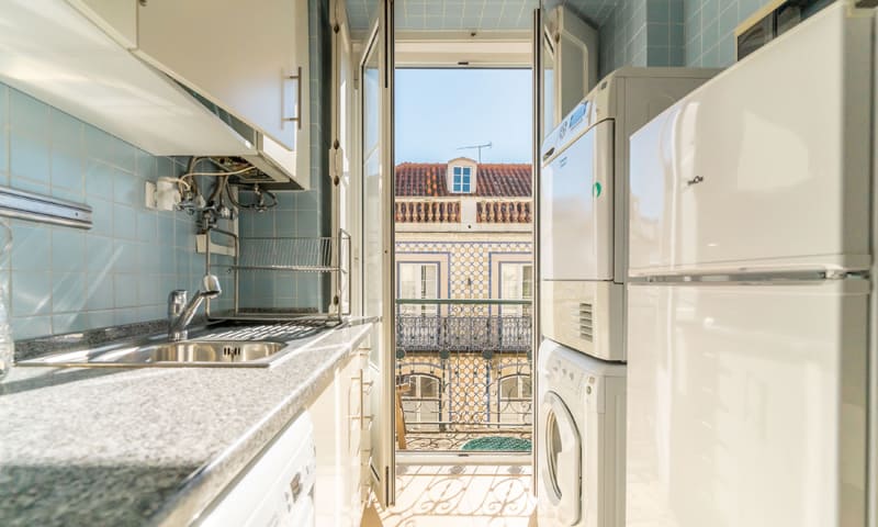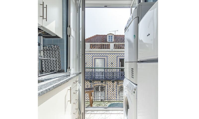 The LV Premier Baixa Lisbon Sun – PR2 apartment is perfect for those choosing the historic area of Lisbon- it is close to many attractions- and elect to stay in modern and fully equipped apartments. There is a large balcony overlooking a pedestrian area (Rua de São Nicolau) allowing guests to sit down outside, take in some of the city life whilst enjoying a relaxing drink. The unit has a comfortable layout and inviting decor. It is difficult to beat the location – everything is at your doorstep for Lisbon attractions and there is easy access to popular areas outside the city such as Sintra and Cascais, as well as the Estoril beaches. The elevator makes it perfect after a hard day of sight seeing.
