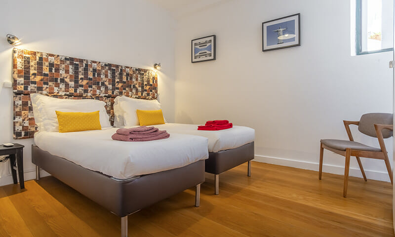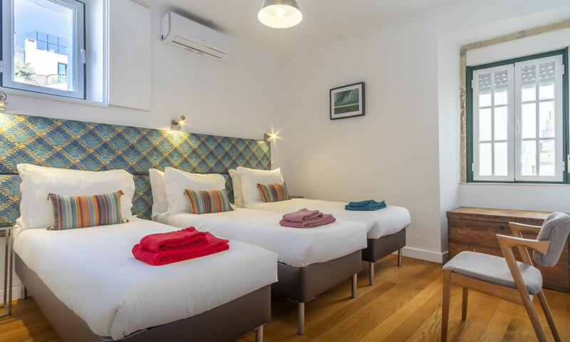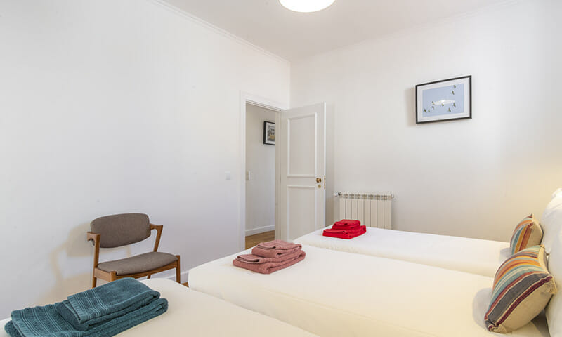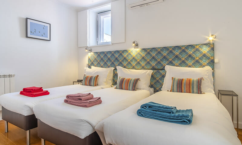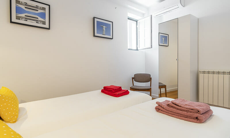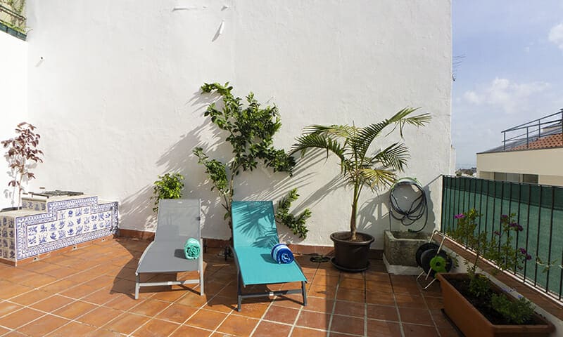 LV Premier Bica Apartments – BI1 is a superb 2 Bedroom apartment, located on the 3rd floor of an walk up building, with a large terrace and balcony with river and city views. Located in the popular historic area – Bica, it offers easy access to a wide variety of bars and restaurants, as well as key attractions. The celebrated funicular – Elevador da Bica is right by the building, as is the foodie paradise TimeOut Ribeira market. Both Bairro Alto and Chiado are 5 min away on foot. The apartment has a functional layout, plus Air Conditioning and Central Heating. It accommodates 5 people in the bedrooms and a maximum of 1 extra guests in 1 folding bed. 88635/AL
