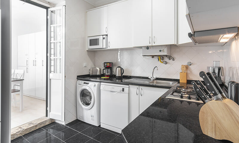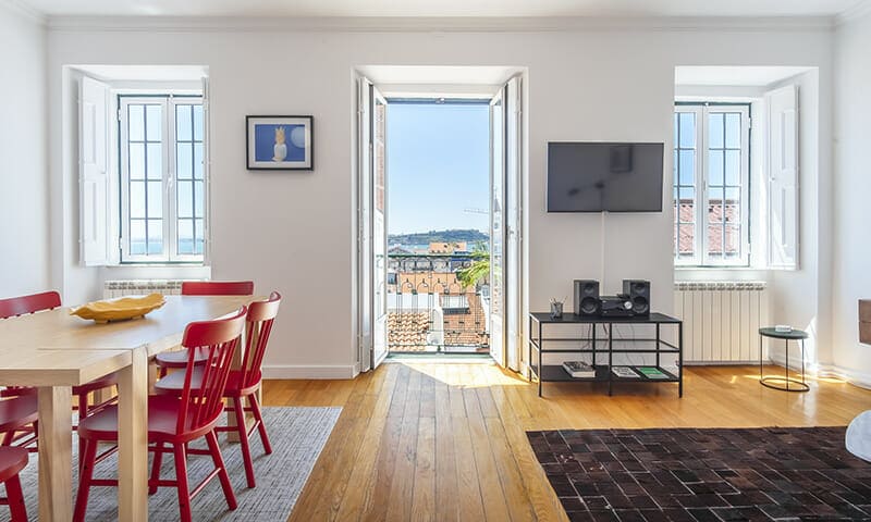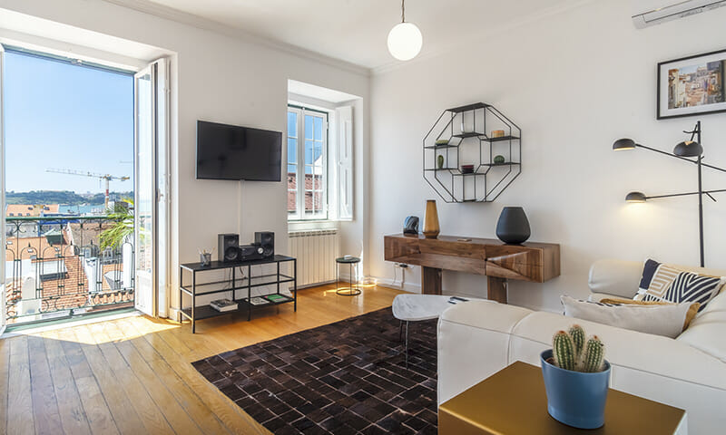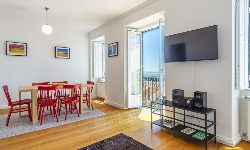 The LV Premier Bica Apartments – BI1 apartment has one of the best relationships between: proximity to all attractions, supermarkets, and transportation: being in the historic quarter; being min away from the Bairro Alto and Chiado quarters of town; being min away from the train to Caiscais and the beaches and more… The terrace is an added bonus perfect for relaxation, an alfresco meal, or simply unwinding with a glass of wine while enjoying the garden. Our balcony is perfect take in the river and the river front area of town. The decoration is practical and functional. You cannot beat the location – everything is at your doorstep.