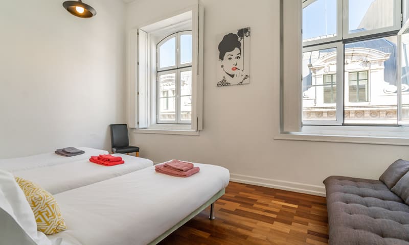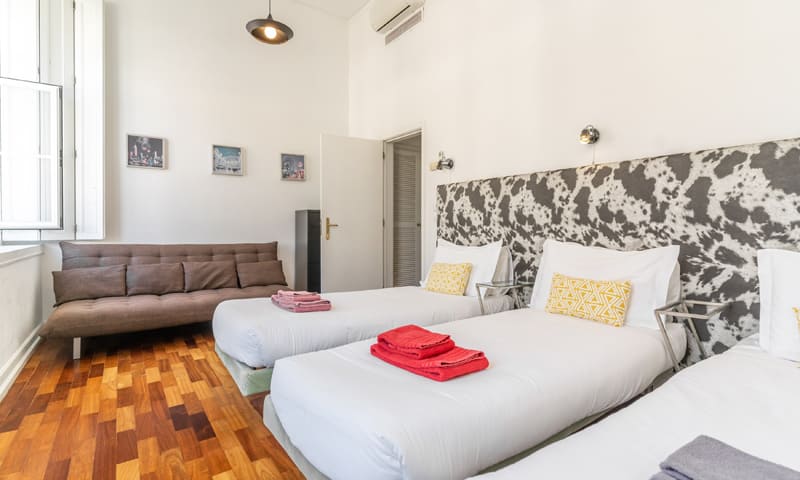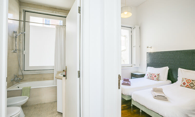 LV Premier Chiado Apartments – CH3 is a bright apartment with 3 bedrooms (2 double and 1 triple), one of the doubles with a king size bed and other bedrooms with single beds. The vacation apartment has our signature LV Premier bed, crispy linen and soft comforters.